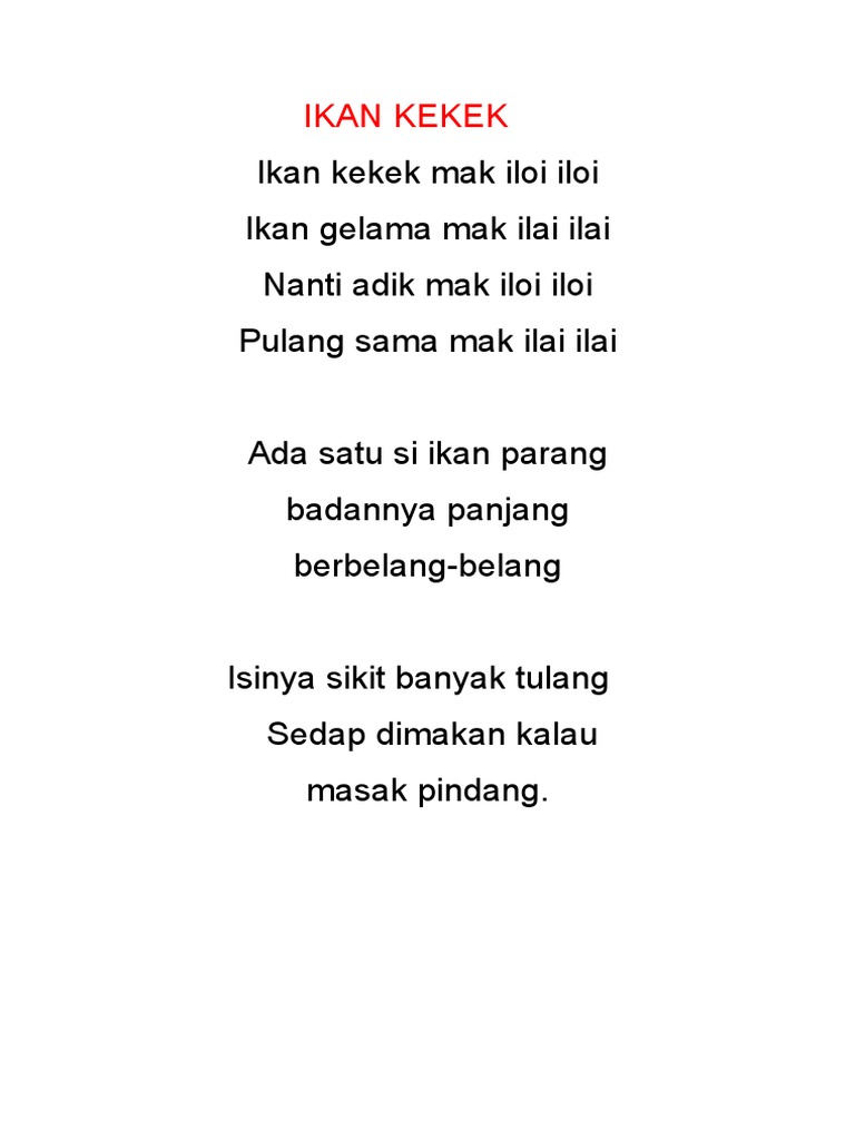 Ikan kekek mak iloi iloi. Come learn study hard dont be lazy. Ada satu si ikan parang.