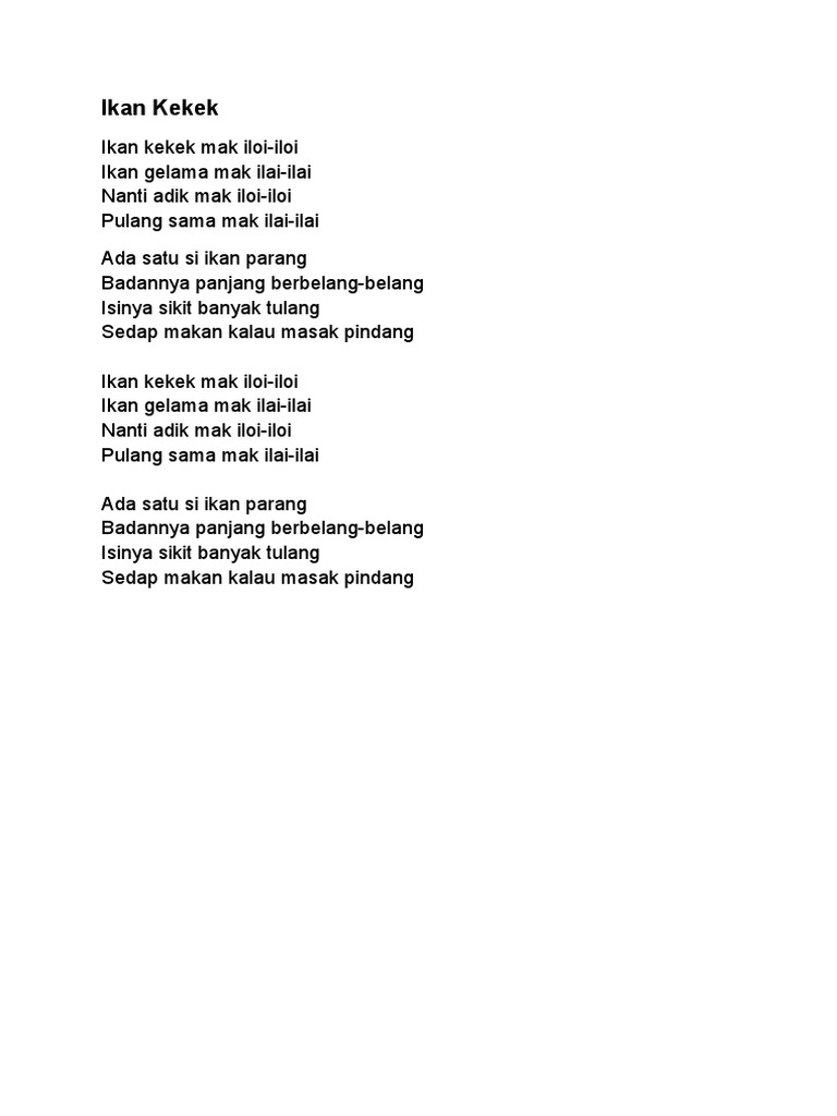 Select the best result to find their address phone number relatives and public records. Apa yang ingin diperlihatkan pada entri ini bukan ikan kekek yang. Ikan kekek mak iloi iloi ikan gelama mak ilai ilai sungguh cantik adikku amboi tapi ketawa mengilai-ngilai.